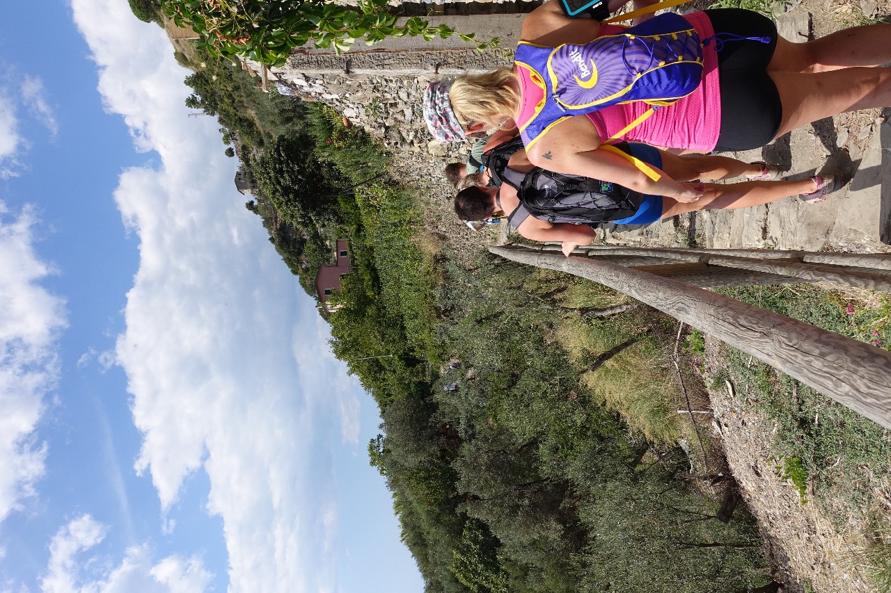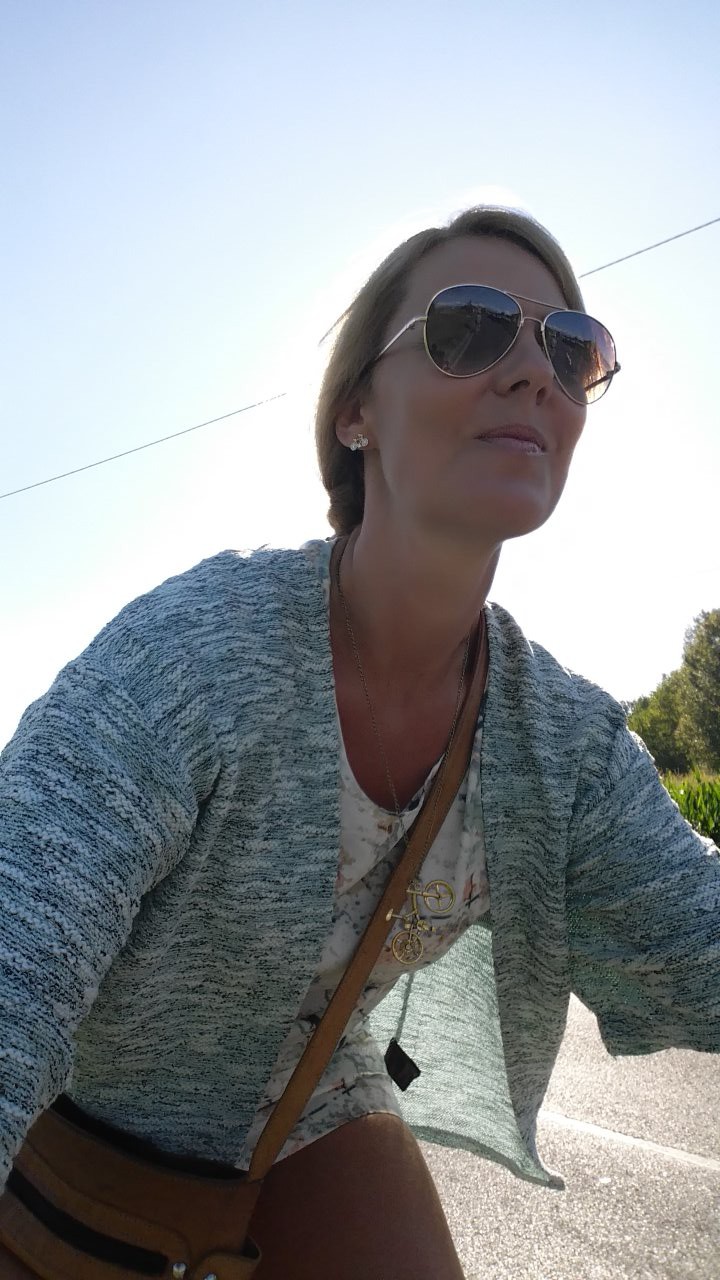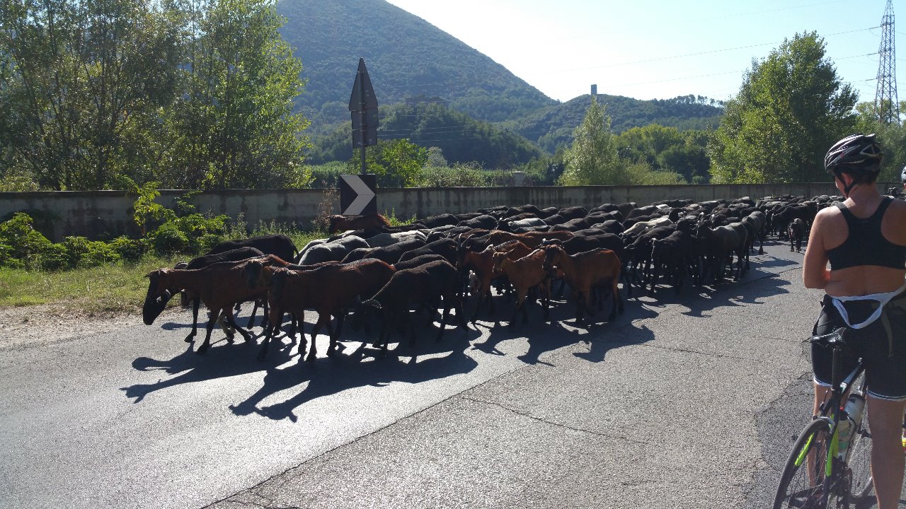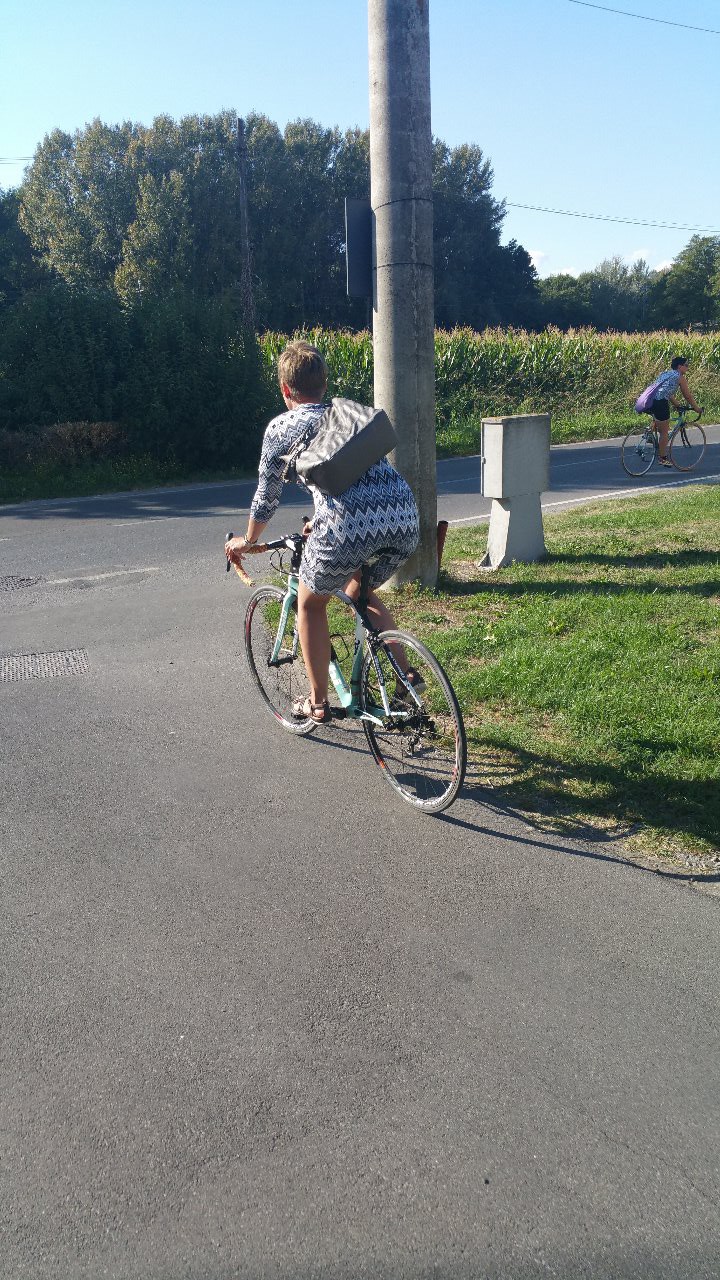 Vi følte oss som "kasta" inn i et eventyr av et landskap. Maisåkra, Oliventre og andre deilige italienske spesialiteta passerte oss der vi "fløy" avgårde på racerne vårres. Vi sykla igjennom forskjellige lukter og atmosfæra, og små landsbya som levde sin vante gang. Men for oss var det som å sykle i en eventyrverden der alle sansan vårres fikk utløp. Hyggelige Italienere ropte og hilste på oss underveis, noen fra sykkel, noen mens de passerte oss med bil og andre som vinket idet de gjorde sine arbeider langs ruten vår. Det va derimot langt mellom toalett, så da èn av oss måtta så grufullt tisse, va det bære førr de andre å "mure sæ" rundt me en liten sarong framførr ei fornøden rosie - vi e kje rådlaus. Må man så må man. Tre minutt seinar møtte vi 10-15 mannlige syklista i møtsatt kjøreretning og vi måtte nu knise litt a korsn det hadde sett ut om vi hadde drøyd den tissepausen bittelitt..