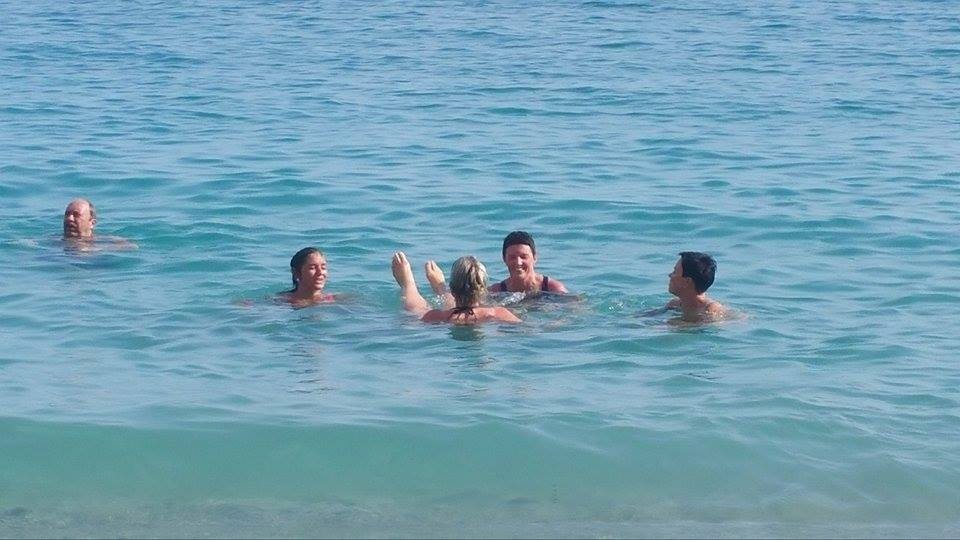 Da vi kom frem, var vi ikke usein om å hive oss i havet èn etter èn - etter en lenge etterlengta dukkert i det deilige havet. Soling, påfyll av "væske", ei aldri så lita yogøkt;- livet smilte.