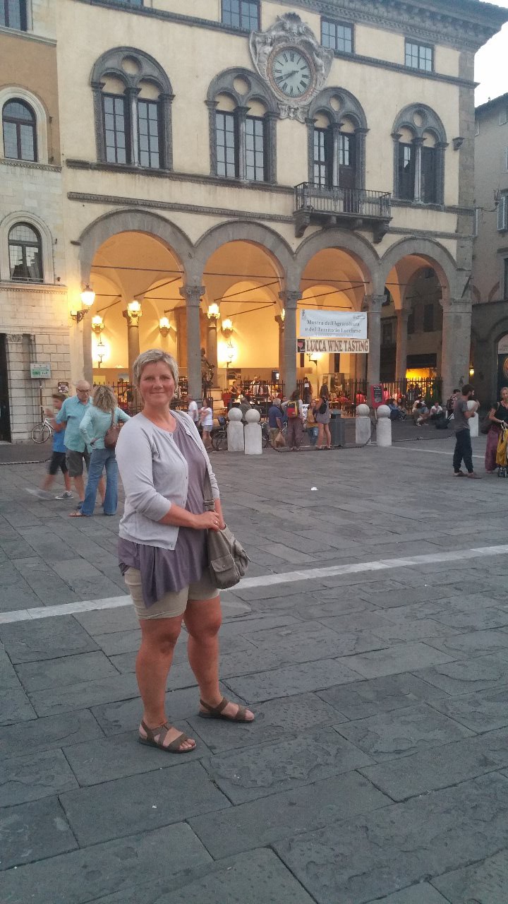 Huset vi leier ligger litt utenfor Lucca, så hjemturen fra Lucca måtte vi ta i stummende mørke. Litt skummelt, men samtidig veldig spennende. Tone hadde med sæ refleksvest, men spørs om det gjor nåkka forskjell. Det va kje ett einaste gatelys og veian hadde sett bedre daga mtp små håll her og der, men vi kom oss velberga heim åsså denna kvelden. "Nån som vil ha et glass vin før vi lægg oss?"