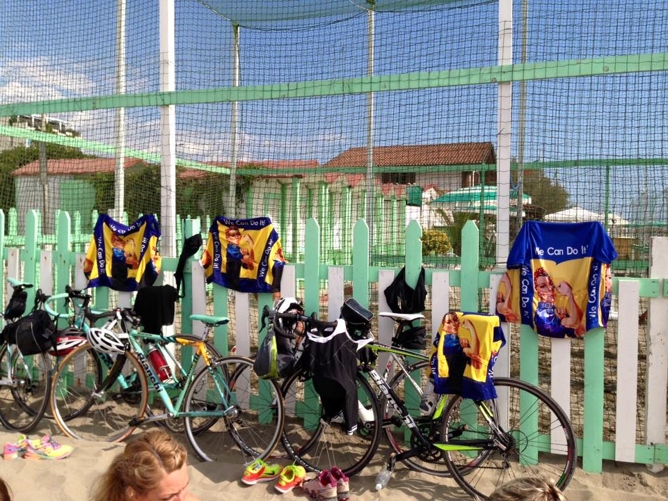 Når rutene ble planlagt var det utrolig vanskelig å se på kartene om underlaget var av asfalt, jord eller sand. Turen fra Torre del Lago til Viareggio var en sti av sand, som skulle bli litt vanskelig å sykle i full fart. Vi kom oss over med føtterne til hjelp enkelte steder, men tok turen som en bonus. Stien var lagt opp som en kjempefin turløype, og vi kunne nyte duften av nåletrær mens praten gikk i ett mellom oss.