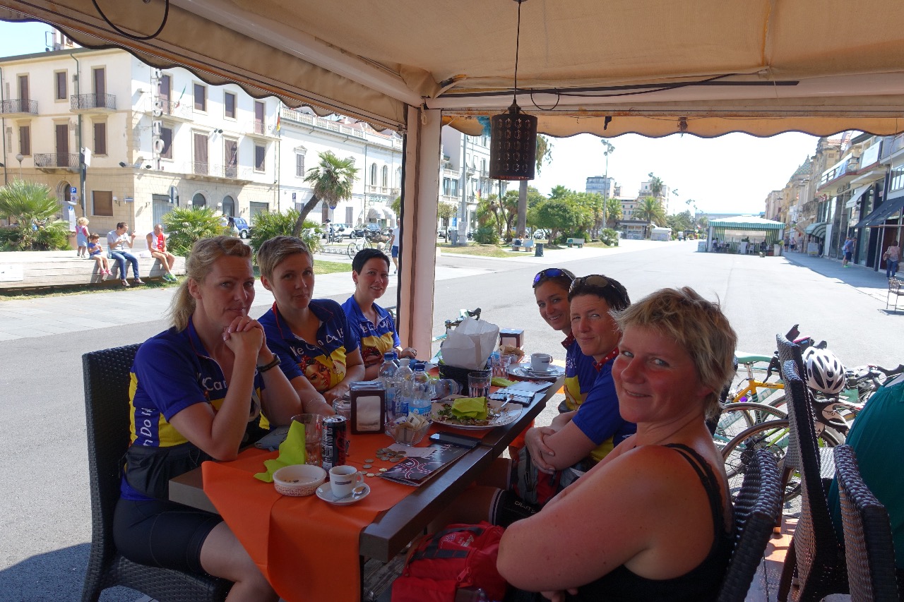 Vi skulle egentlig spise lunsj i Torre del Lago, men tok en kjapp avgjørelse på at vi ville sykle enda lengre. Vi var alle "høy" på alle inntrykkan som turen hadde gitt oss, og vi ville ha mer. Torre del Lago var et fantastisk sted, med deilig sandstrand og en veldig rolig atmosfære. Vi ble bare stående og suge til oss alle "bildan" som var rundt oss. Energibarer og energidrikke ble inntatt før vi igjen satt oss på setene og satte kursen videre mot Viareggio.